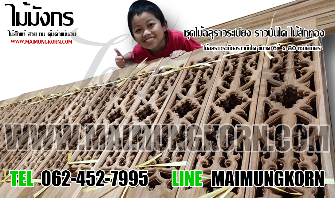 สินค้าประเภทไม้ฉลุ : ไม้ฉลุระเบียง ไม้ฉลุราวระเบียง ไม้ฉลุราวบันได ไม้สักทอง